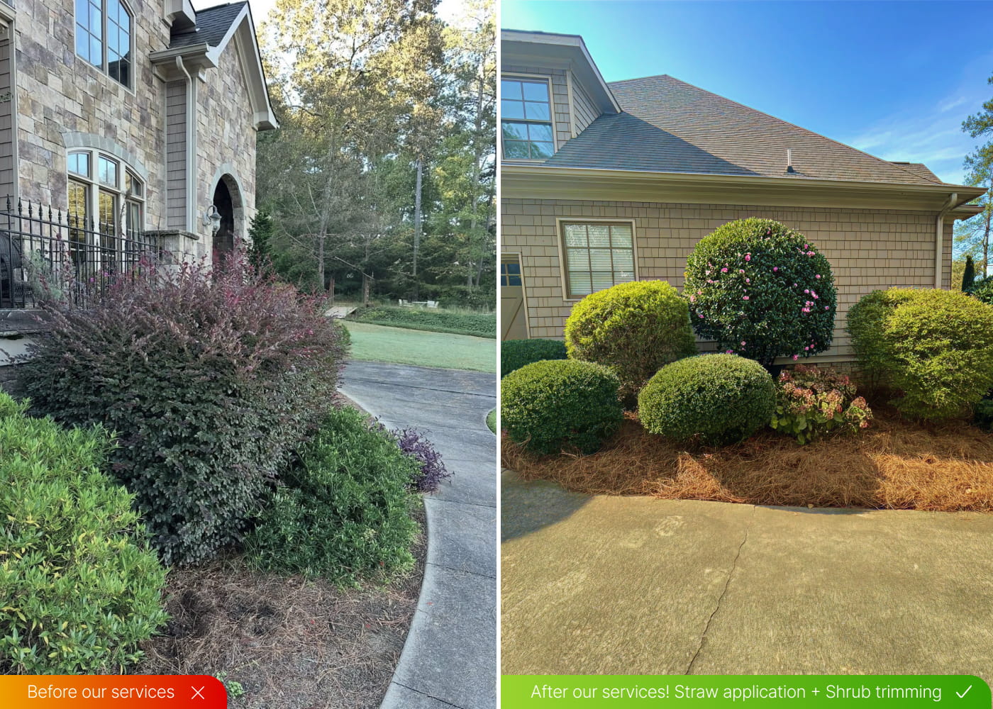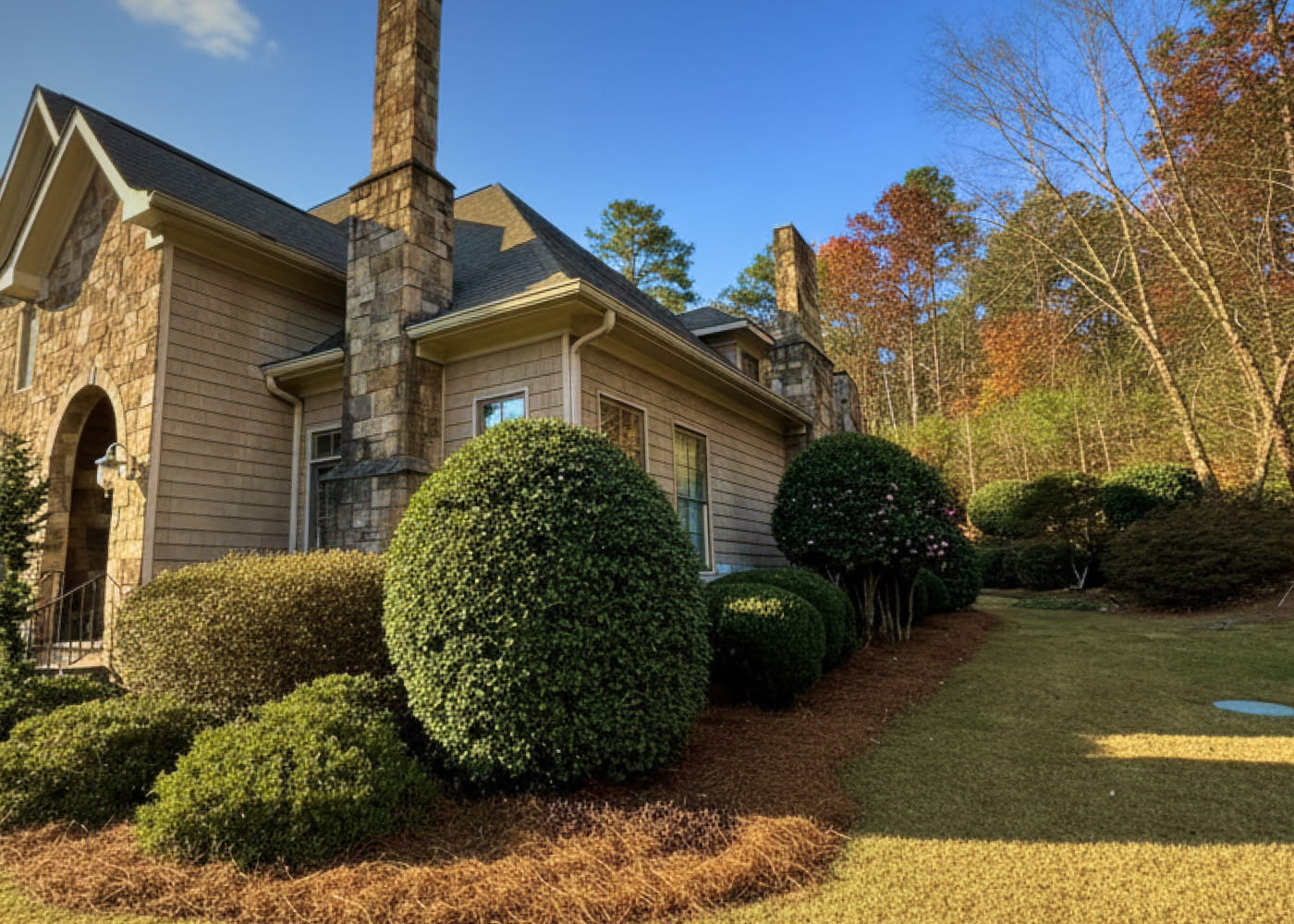 Quality mulch and pine straw installation that boosts curb appeal and supports plant health.